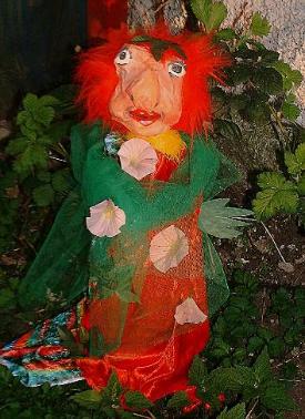 Das Kleid des Waldtrolls ist mit Blumen und Blättern geschmückt. In Norwegen gibt es viel Wald |