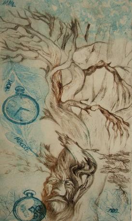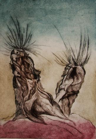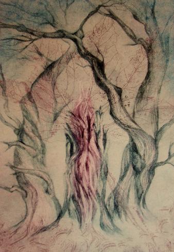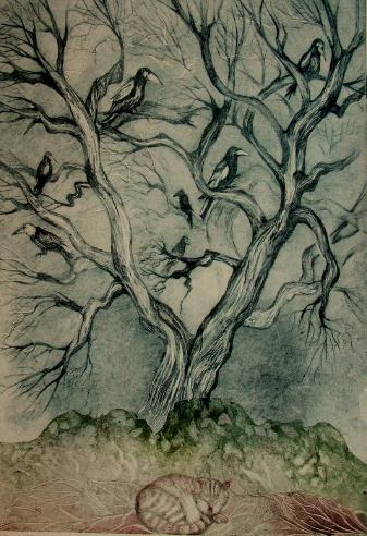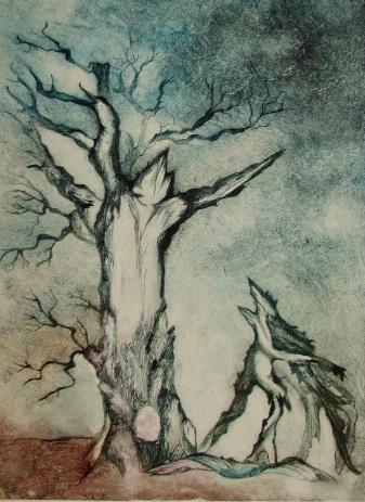 Weidengeister Kaltnadelradierung schwarz/weiß |