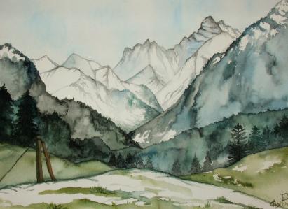 Winterliche Impressionen Landschaftsaquarelle aus Oberstdorf von Conny Abramzik |